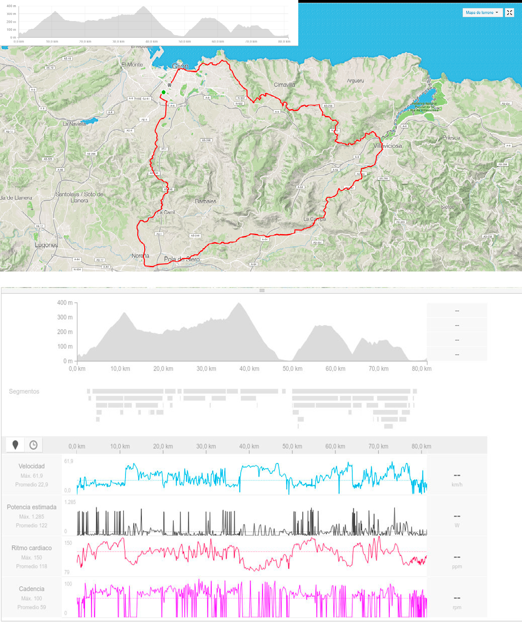Gijón direccion hacia Alto la Madera, El Berron, Pola de Siero, Vega Sariego, Alto La Campa, Villaviciosa, Puerto el Pedroso,La Esperanza, Puente Arroes, Alto el Infanzón y regreso hacia Gijón.